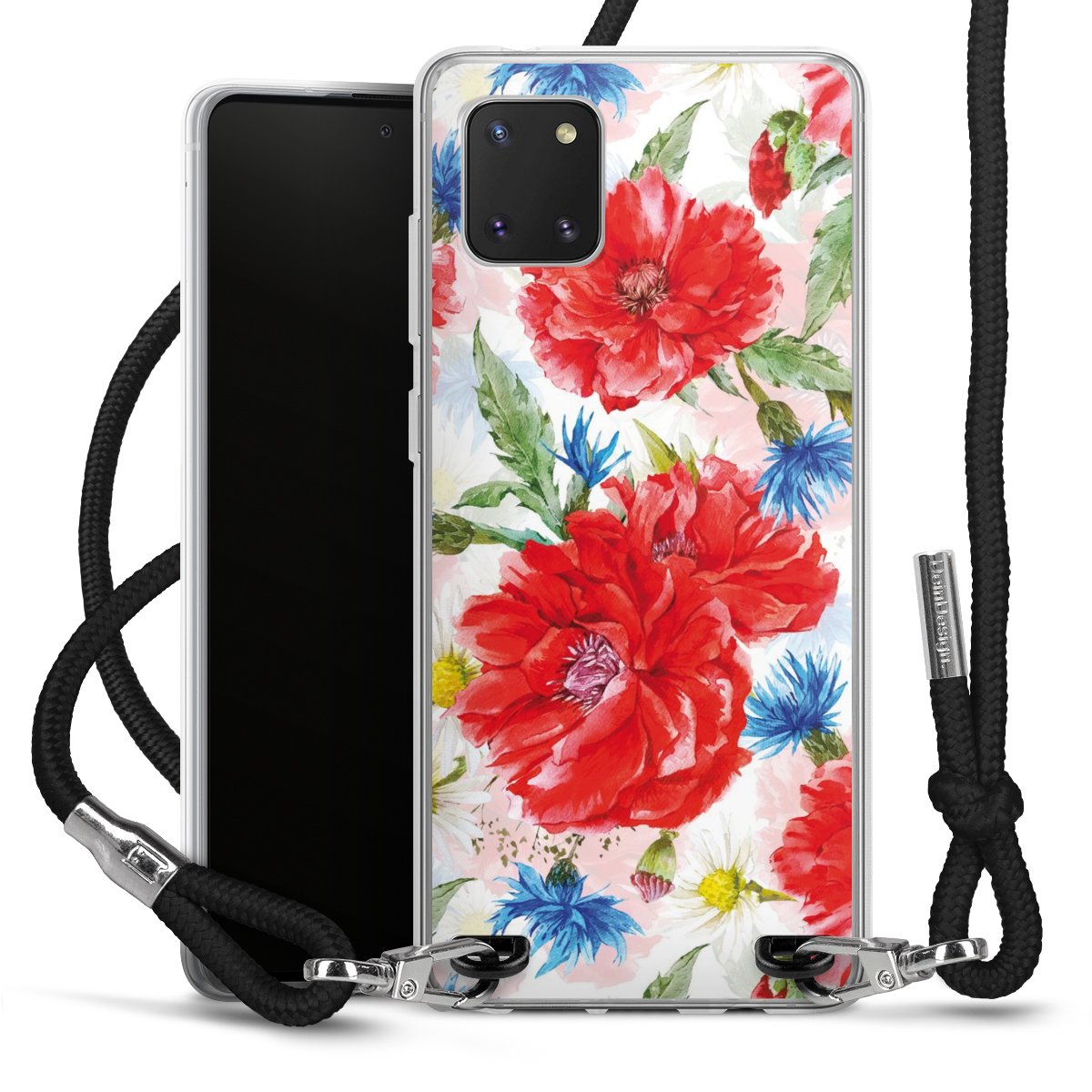 The flexible case is made from a high quality TPU material (thermoplastic Polyurethan). Thanks to its long-lasting and break resistant characteristics, the case is flexible yet consistent in form and has a great grip and feel. The textile strap made from Polyester gives a chic yet casual accent allowing you to carry your phone like a bag or necklace - a practical gadget perfect for your next adventure. The textile strap is about 1.70 meters long and the length can easily be adjusted through the knots. Our Carry Case is available in black, red, pink, grey, mustard, dark green and royal blue. We added a metal fastening to give the product an elegant touch. The ends of the textile strap are covered with metallic end caps to protect them against fraying.