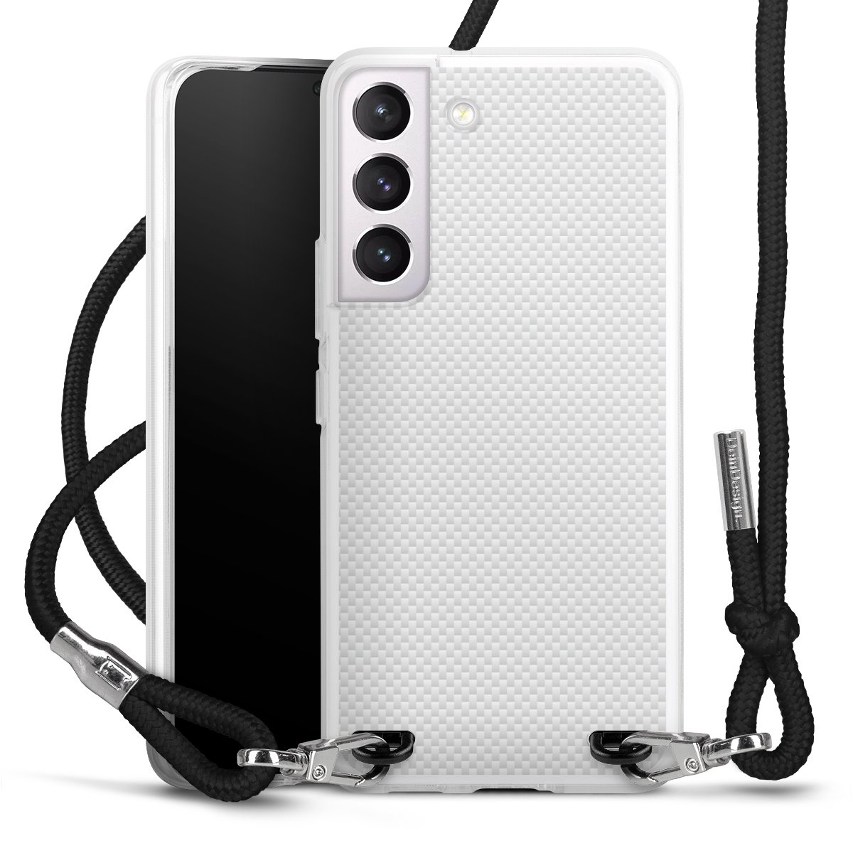 For our Carry Case we are using our advanced direct printing technology. The backside is fully printable, the frame is left unprinted. You can order the phone case without print, printed completely or also with a partial print. Choose one of our exclusive, pre-made shop designs or let your creativity shine and create your very own unique design with your pictures, overlays and text.