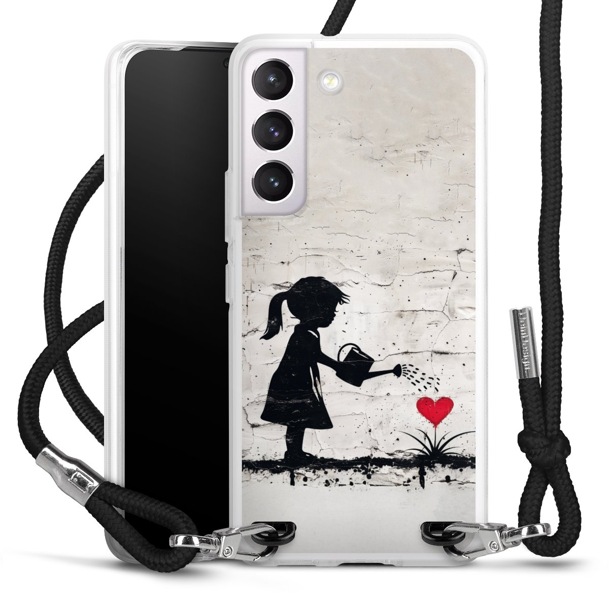 For our Carry Case we are using our advanced direct printing technology. The backside is fully printable, the frame is left unprinted. You can order the phone case without print, printed completely or also with a partial print. Choose one of our exclusive, pre-made shop designs or let your creativity shine and create your very own unique design with your pictures, overlays and text.