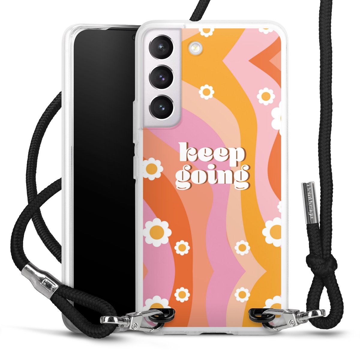Keep your phone handy at all times, thanks to the flexible silicone case with a textile strap.