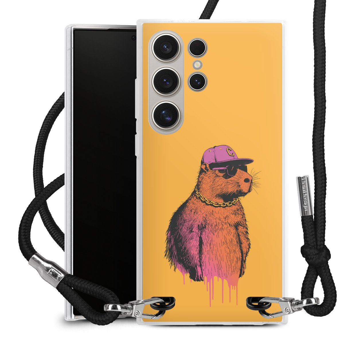 For our Carry Case we are using our advanced direct printing technology. The backside is fully printable, the frame is left unprinted. You can order the phone case without print, printed completely or also with a partial print. Choose one of our exclusive, pre-made shop designs or let your creativity shine and create your very own unique design with your pictures, overlays and text.