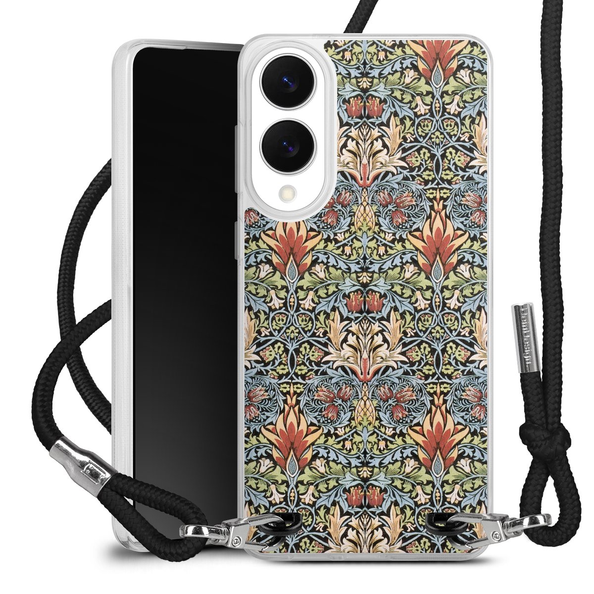 The flexible case is made from a high quality TPU material (thermoplastic Polyurethan). Thanks to its long-lasting and break resistant characteristics, the case is flexible yet consistent in form and has a great grip and feel. The textile strap made from Polyester gives a chic yet casual accent allowing you to carry your phone like a bag or necklace - a practical gadget perfect for your next adventure. The textile strap is about 1.70 meters long and the length can easily be adjusted through the knots. Our Carry Case is available in black, red, pink, grey, mustard, dark green and royal blue. We added a metal fastening to give the product an elegant touch. The ends of the textile strap are covered with metallic end caps to protect them against fraying.