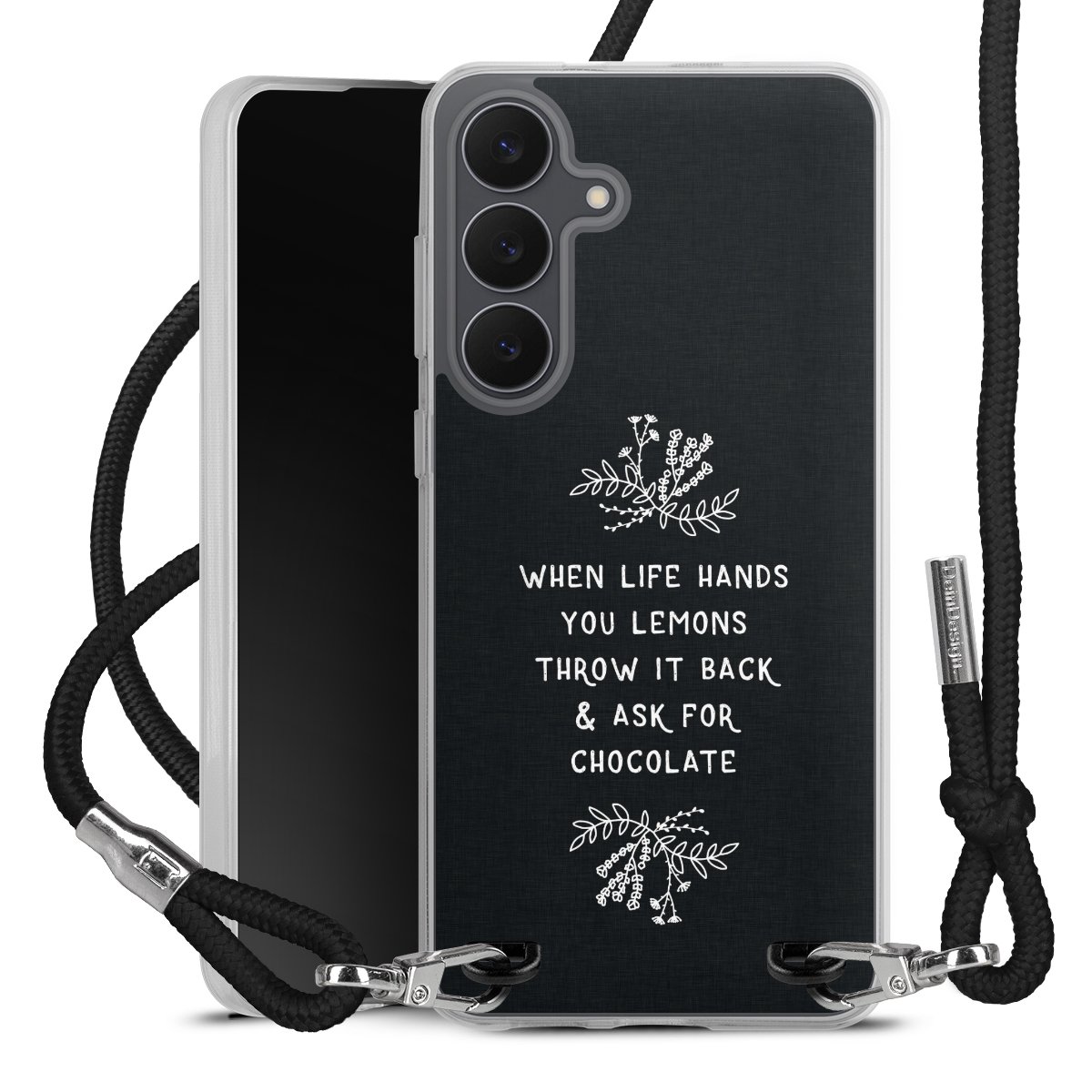 Keep your phone handy at all times, thanks to the flexible silicone case with a textile strap.