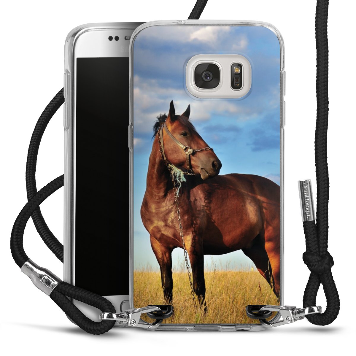 The flexible case is made from a high quality TPU material (thermoplastic Polyurethan). Thanks to its long-lasting and break resistant characteristics, the case is flexible yet consistent in form and has a great grip and feel. The textile strap made from Polyester gives a chic yet casual accent allowing you to carry your phone like a bag or necklace - a practical gadget perfect for your next adventure. The textile strap is about 1.70 meters long and the length can easily be adjusted through the knots. Our Carry Case is available in black, red, pink, grey, mustard, dark green and royal blue. We added a metal fastening to give the product an elegant touch. The ends of the textile strap are covered with metallic end caps to protect them against fraying.