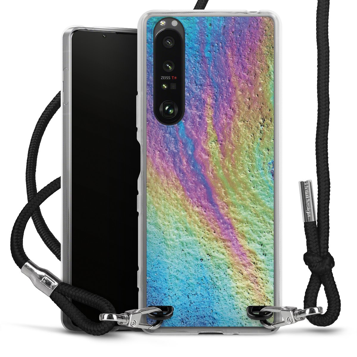 Keep your phone handy at all times, thanks to the flexible silicone case with a textile strap.