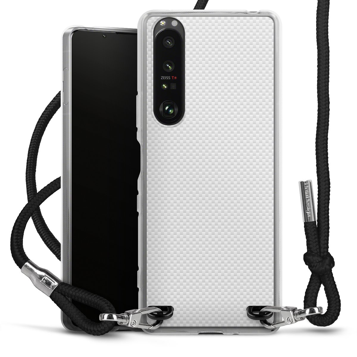 For our Carry Case we are using our advanced direct printing technology. The backside is fully printable, the frame is left unprinted. You can order the phone case without print, printed completely or also with a partial print. Choose one of our exclusive, pre-made shop designs or let your creativity shine and create your very own unique design with your pictures, overlays and text.
