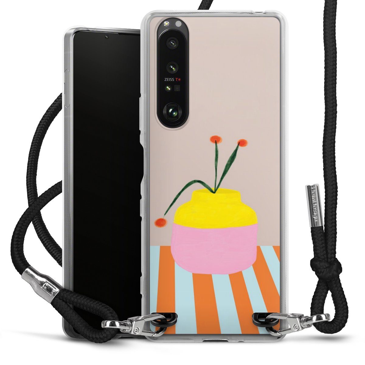 Keep your phone handy at all times, thanks to the flexible silicone case with a textile strap.