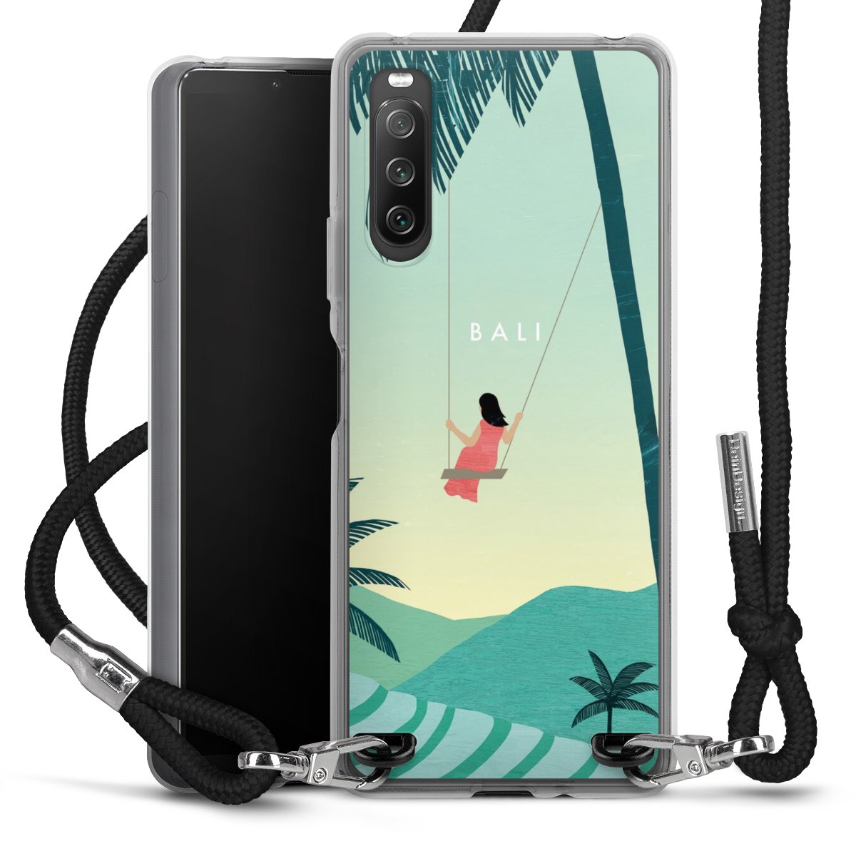 Keep your phone handy at all times, thanks to the flexible silicone case with a textile strap.