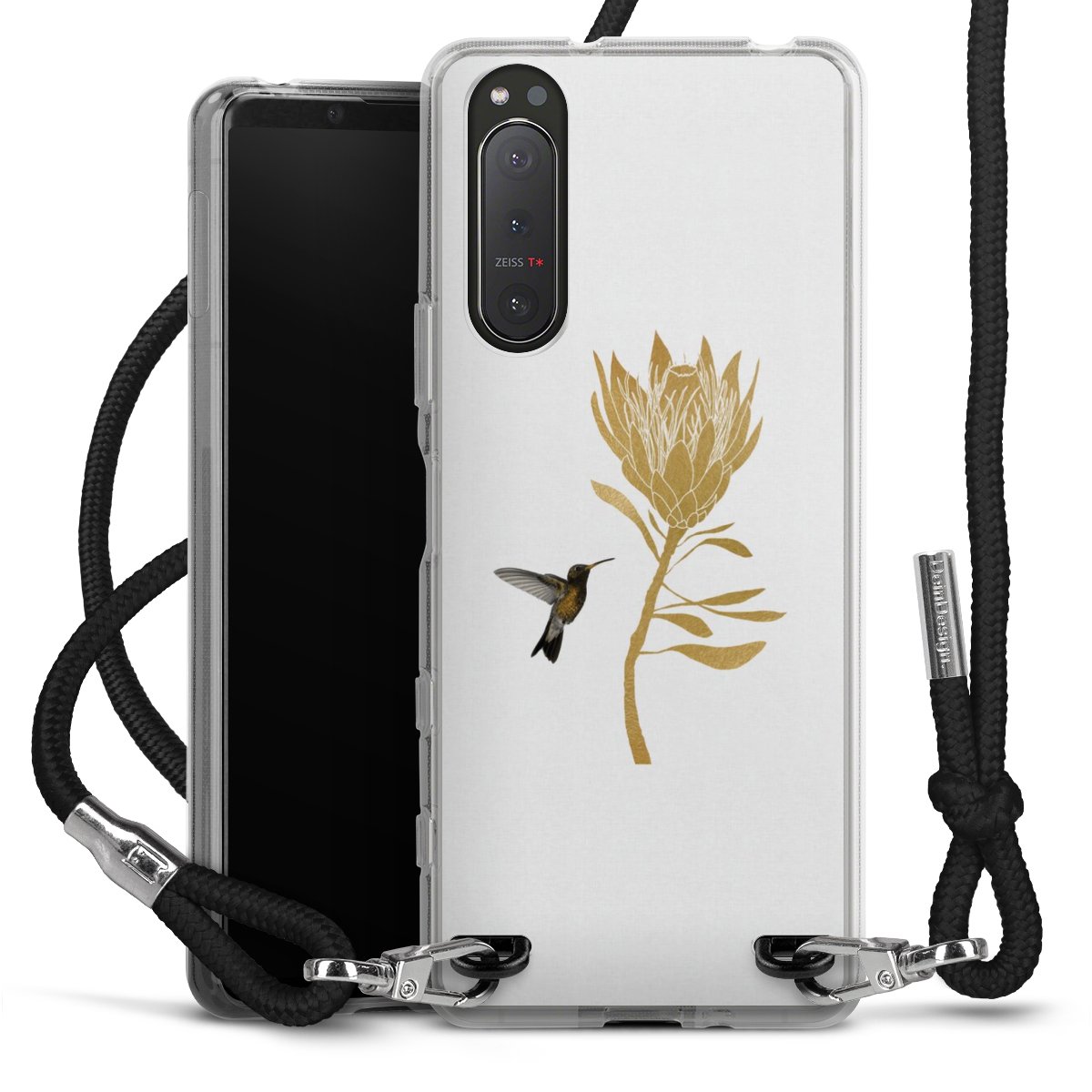 Keep your phone handy at all times, thanks to the flexible silicone case with a textile strap.