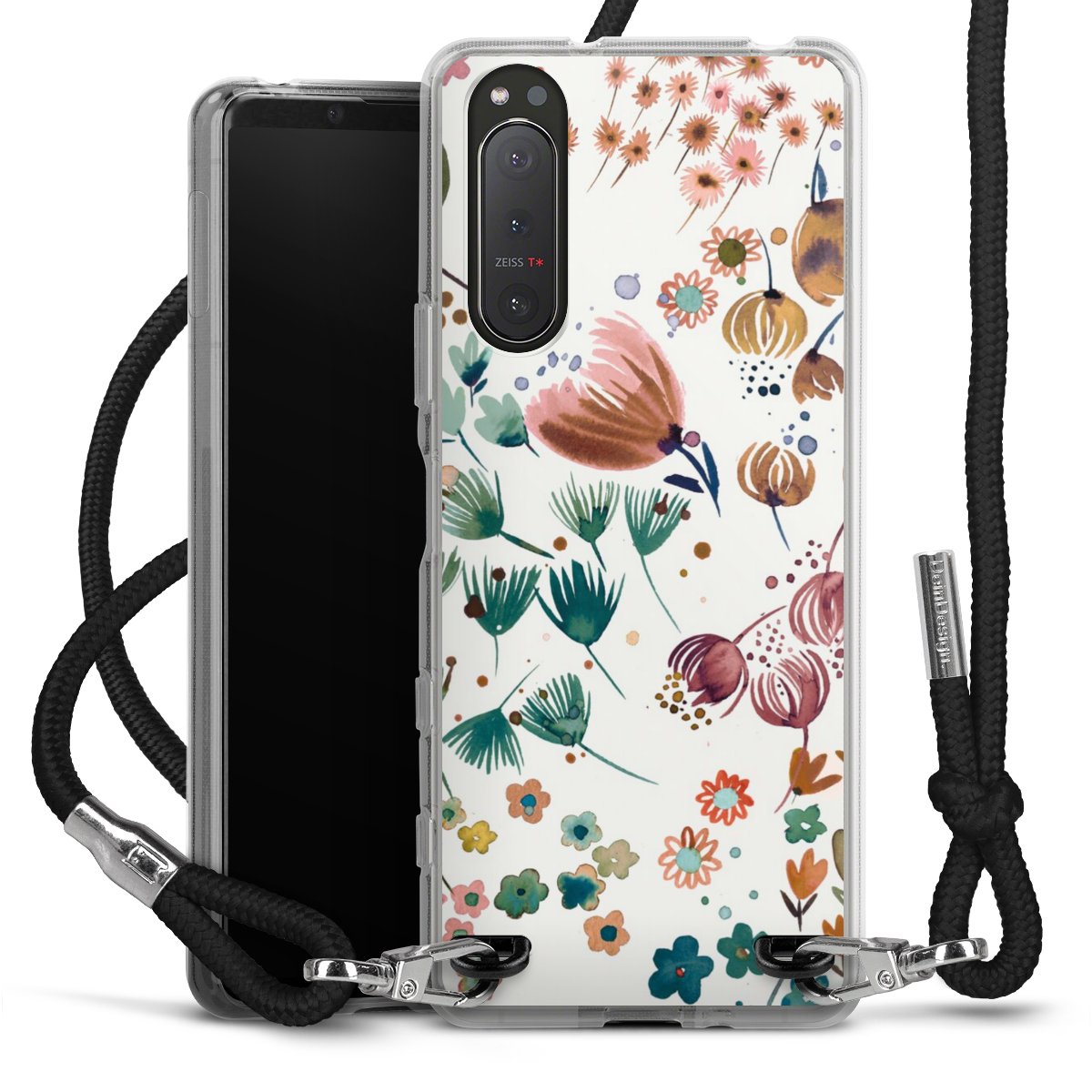 Keep your phone handy at all times, thanks to the flexible silicone case with a textile strap.