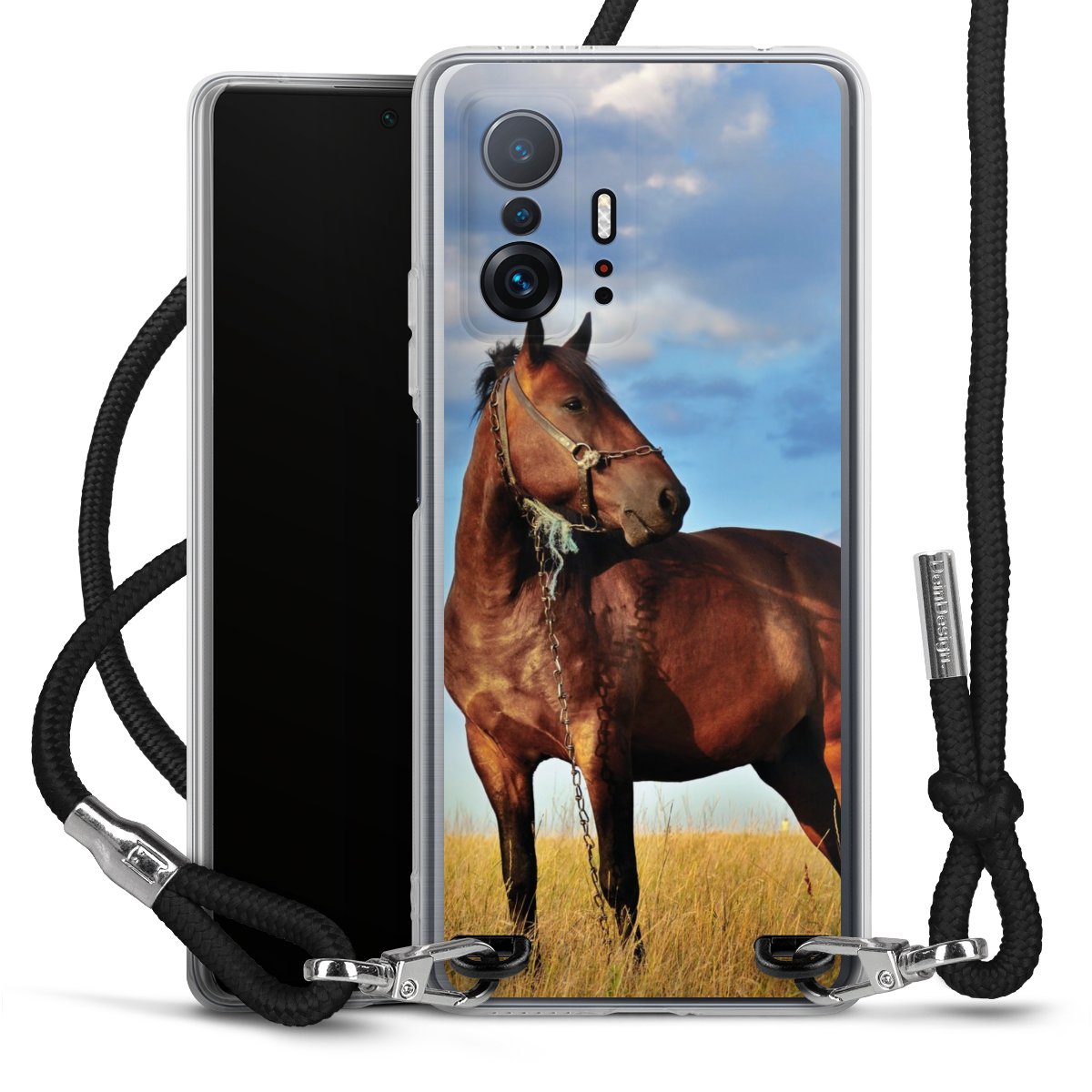 Keep your phone handy at all times, thanks to the flexible silicone case with a textile strap.