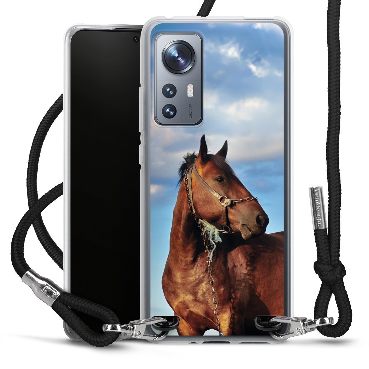 Keep your phone handy at all times, thanks to the flexible silicone case with a textile strap.