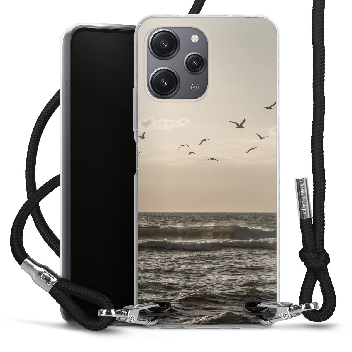 Keep your phone handy at all times, thanks to the flexible silicone case with a textile strap.