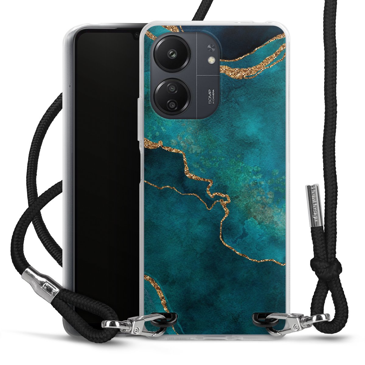Keep your phone handy at all times, thanks to the flexible silicone case with a textile strap.