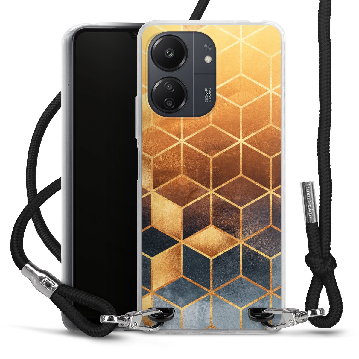 Keep your phone handy at all times, thanks to the flexible silicone case with a textile strap.
