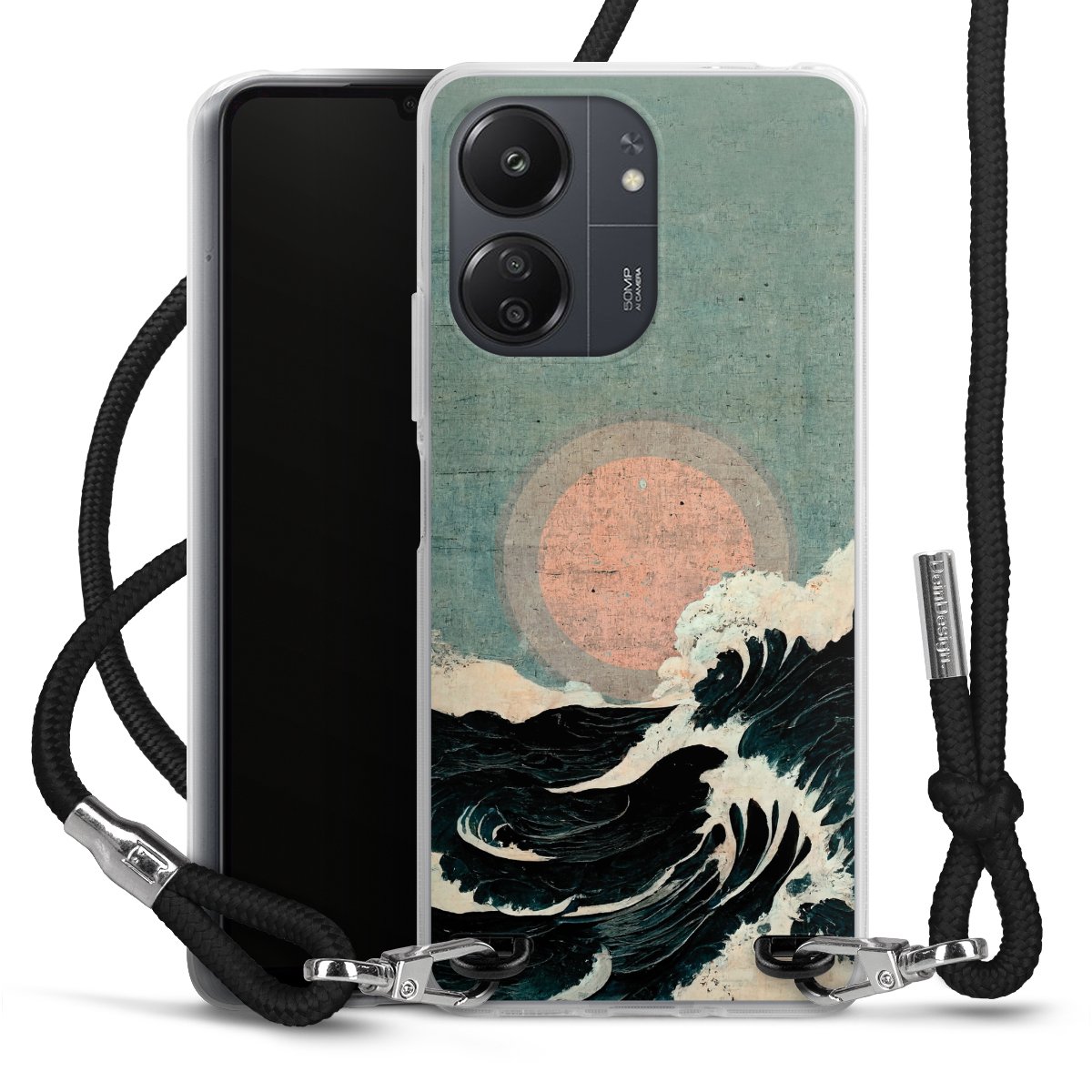 Keep your phone handy at all times, thanks to the flexible silicone case with a textile strap.