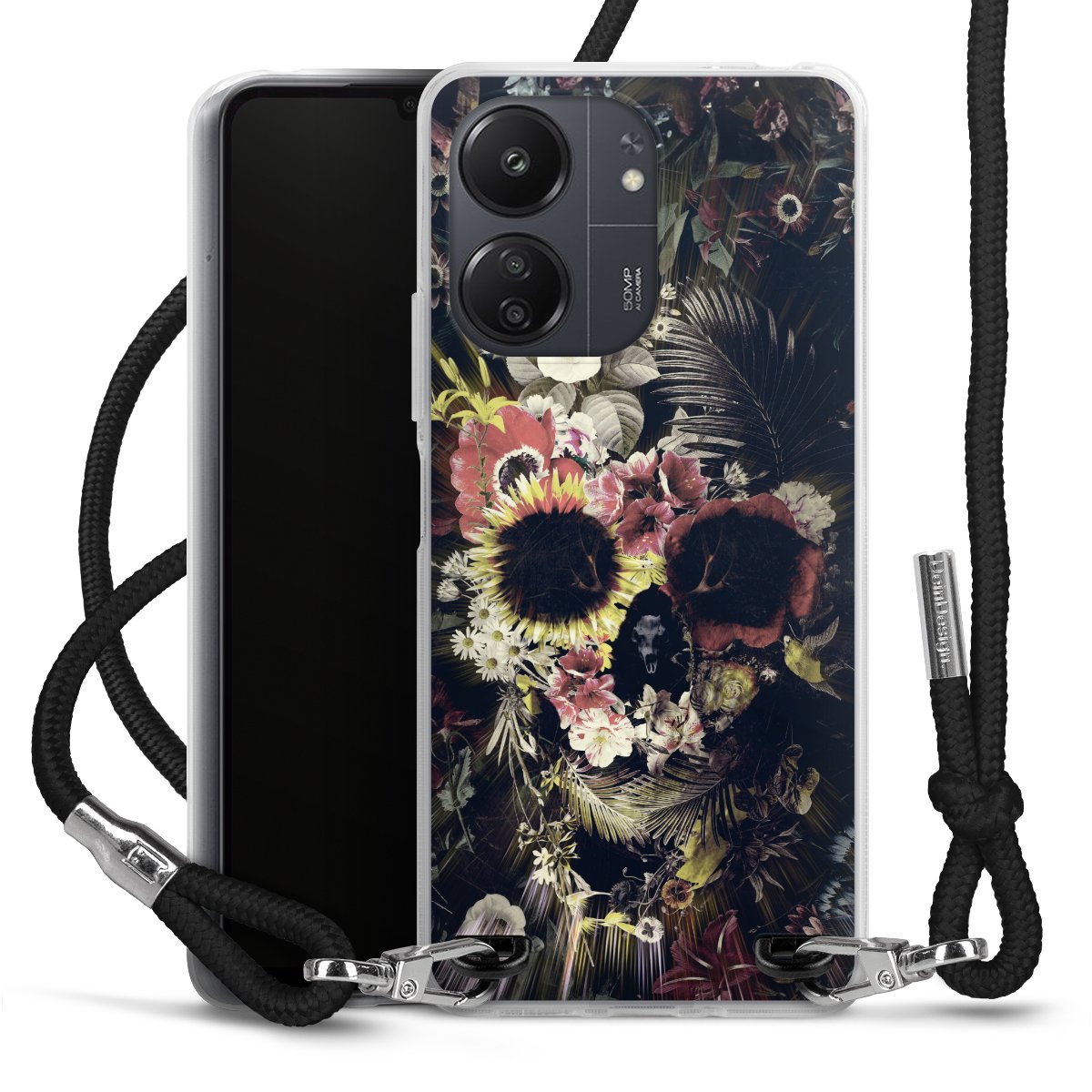 Keep your phone handy at all times, thanks to the flexible silicone case with a textile strap.
