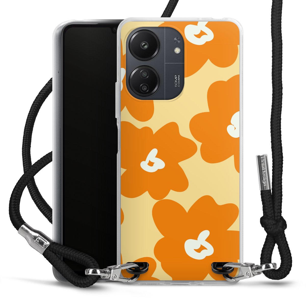 Keep your phone handy at all times, thanks to the flexible silicone case with a textile strap.