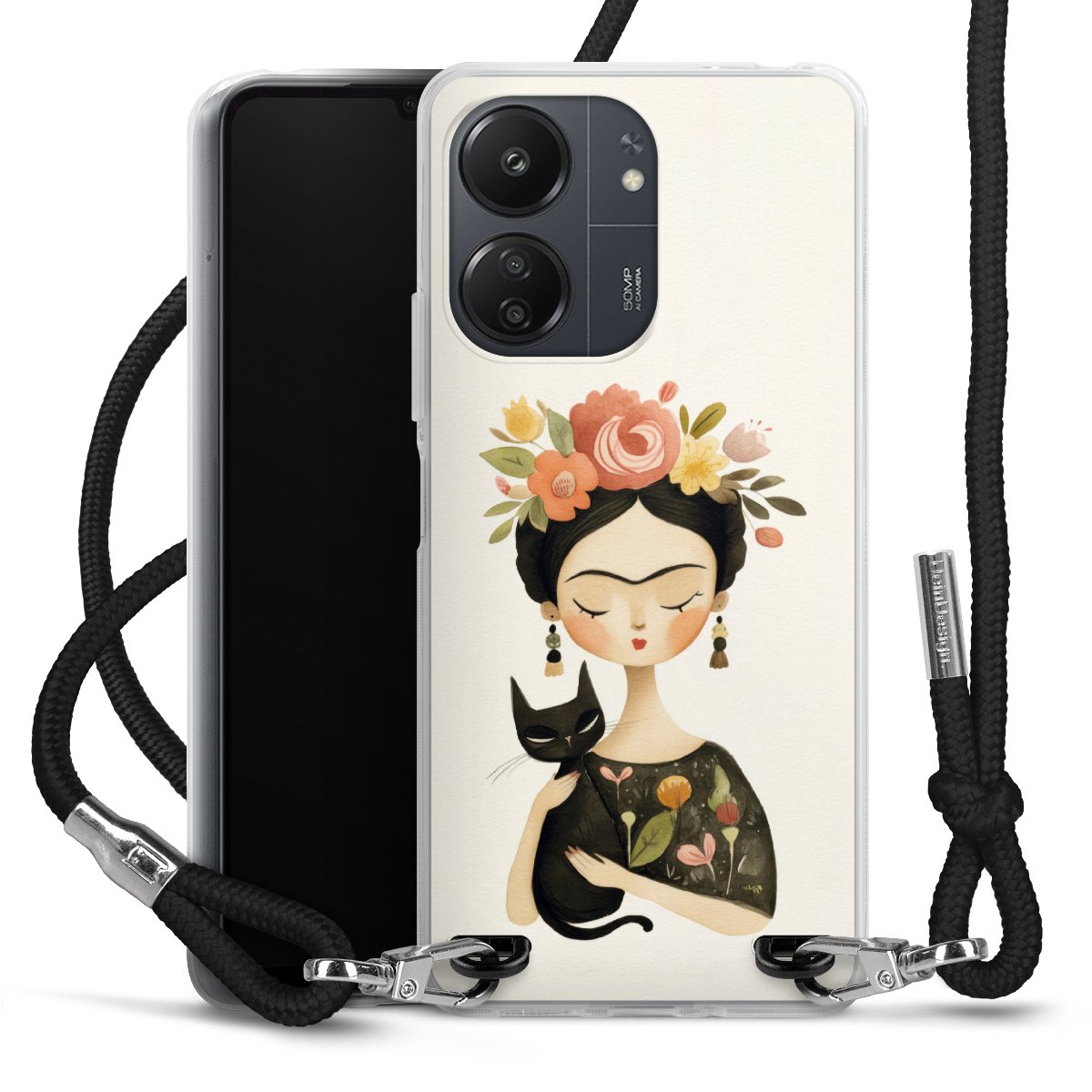 Keep your phone handy at all times, thanks to the flexible silicone case with a textile strap.