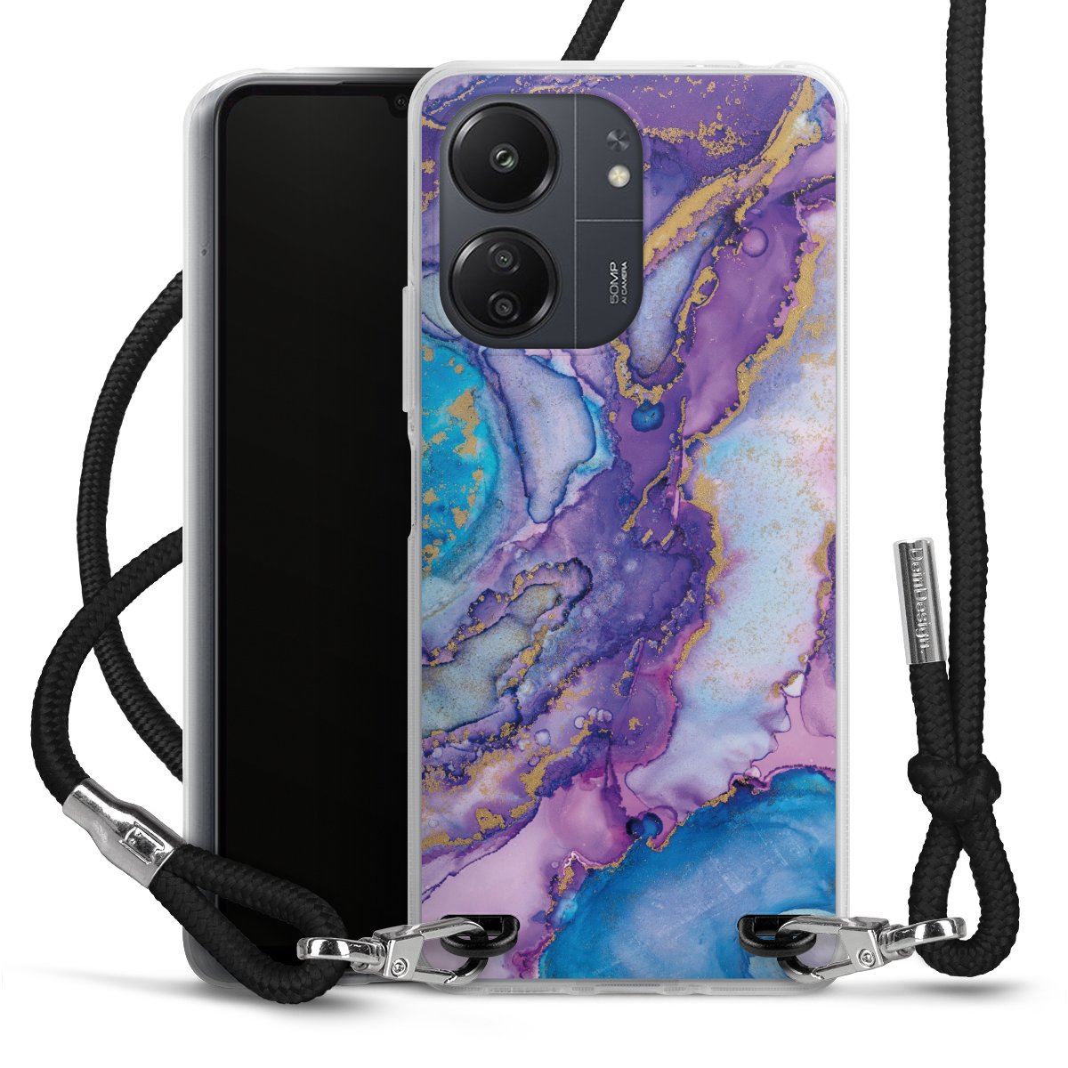 Keep your phone handy at all times, thanks to the flexible silicone case with a textile strap.