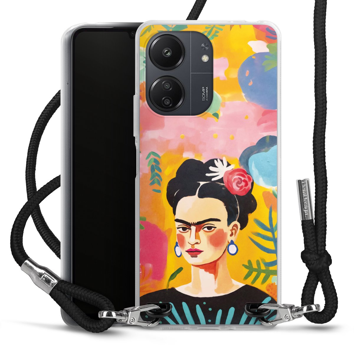 Keep your phone handy at all times, thanks to the flexible silicone case with a textile strap.
