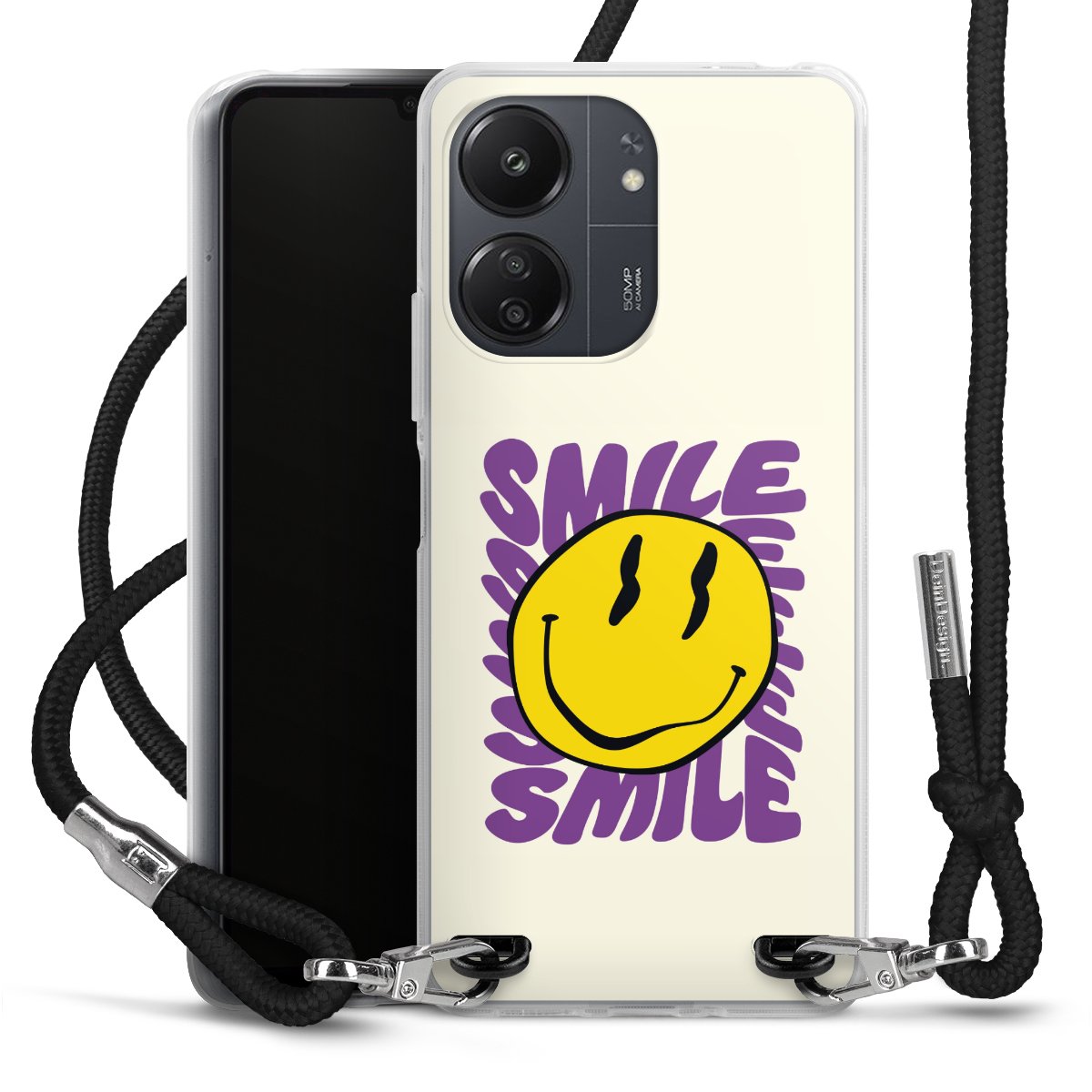 Keep your phone handy at all times, thanks to the flexible silicone case with a textile strap.