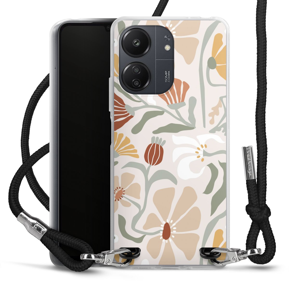 Keep your phone handy at all times, thanks to the flexible silicone case with a textile strap.