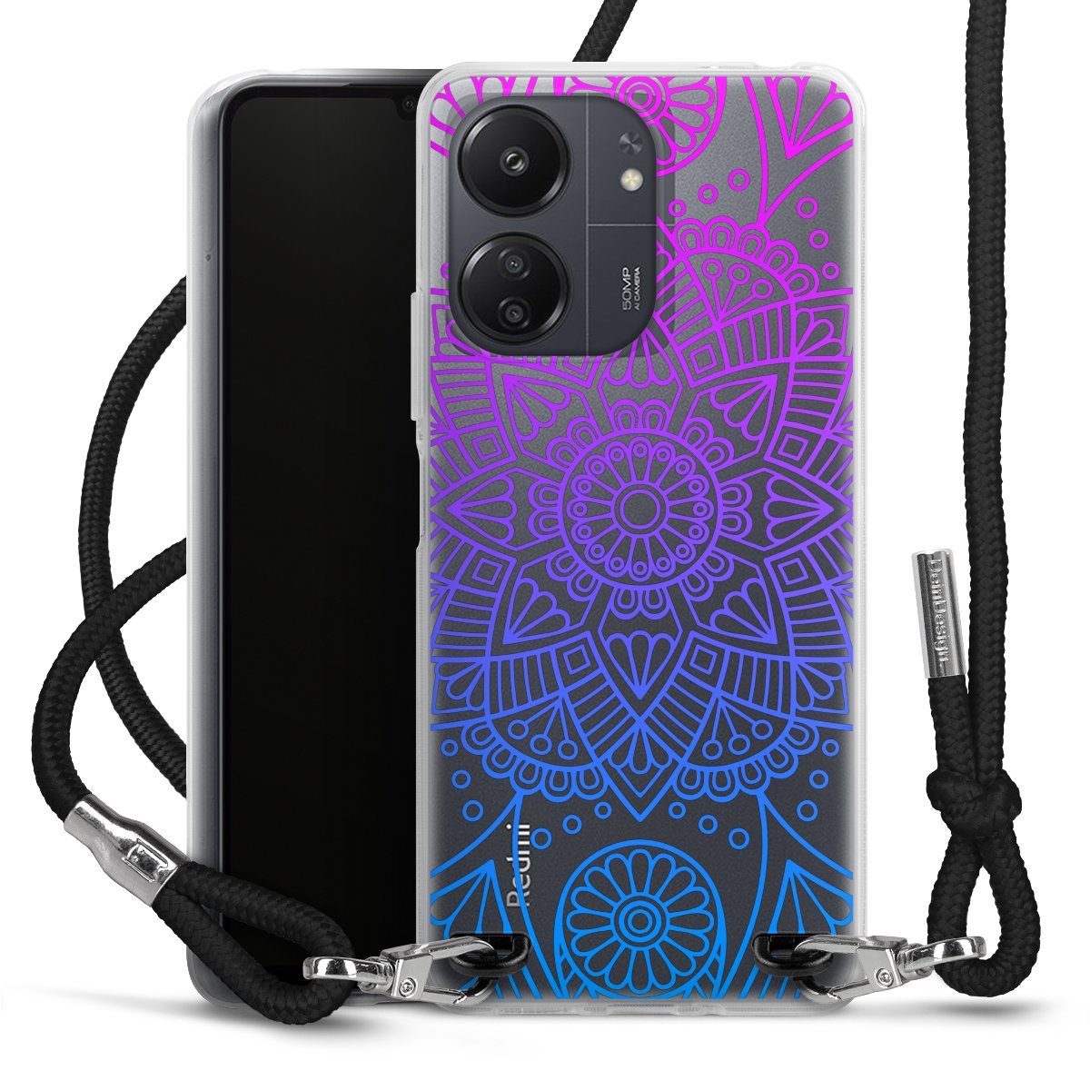 The flexible case is made from a high quality TPU material (thermoplastic Polyurethan). Thanks to its long-lasting and break resistant characteristics, the case is flexible yet consistent in form and has a great grip and feel. The textile strap made from Polyester gives a chic yet casual accent allowing you to carry your phone like a bag or necklace - a practical gadget perfect for your next adventure. The textile strap is about 1.70 meters long and the length can easily be adjusted through the knots. Our Carry Case is available in black, red, pink, grey, mustard, dark green and royal blue. We added a metal fastening to give the product an elegant touch. The ends of the textile strap are covered with metallic end caps to protect them against fraying.