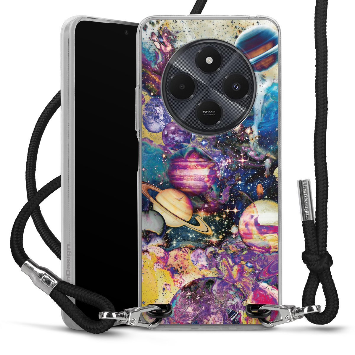 Keep your phone handy at all times, thanks to the flexible silicone case with a textile strap.