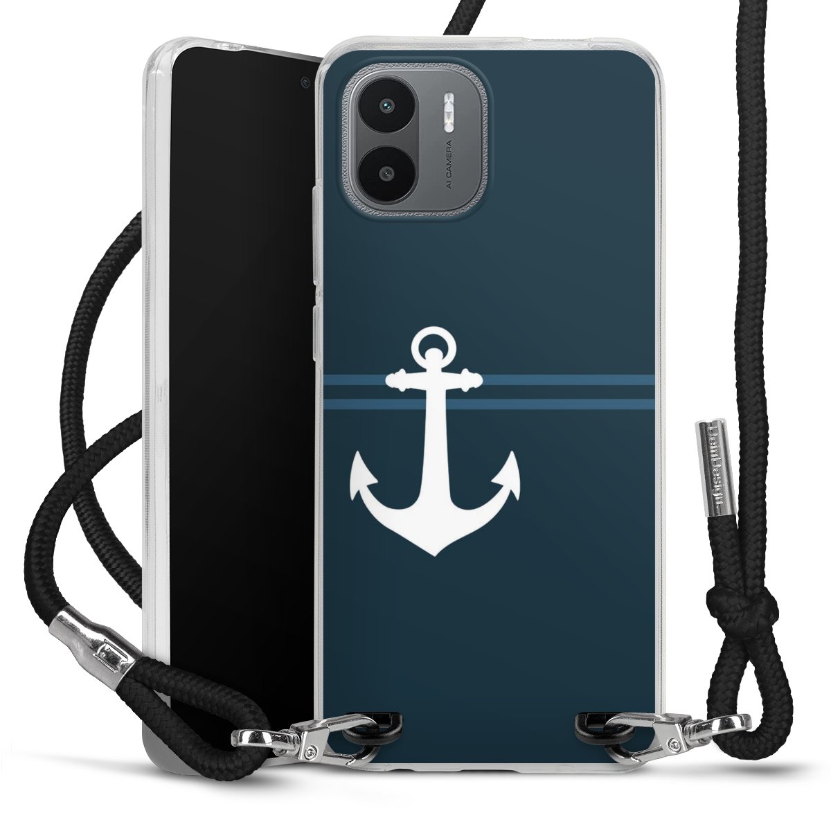 Keep your phone handy at all times, thanks to the flexible silicone case with a textile strap.