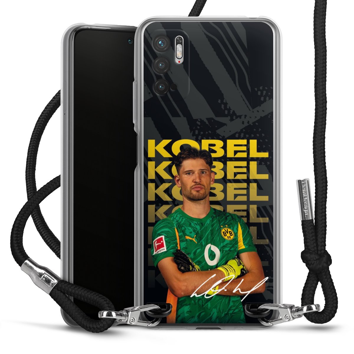 Keep your phone handy at all times, thanks to the flexible silicone case with a textile strap.