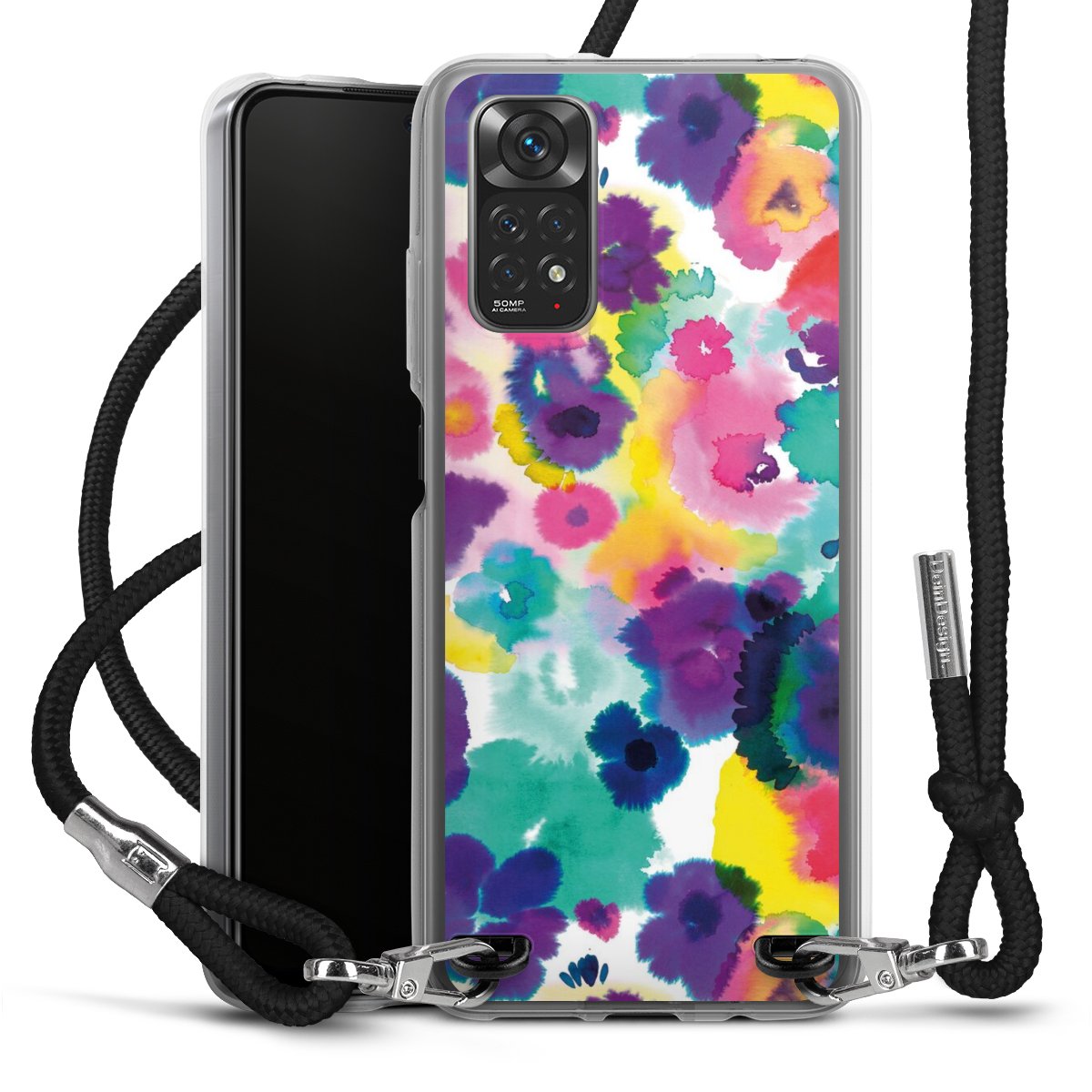 Keep your phone handy at all times, thanks to the flexible silicone case with a textile strap.