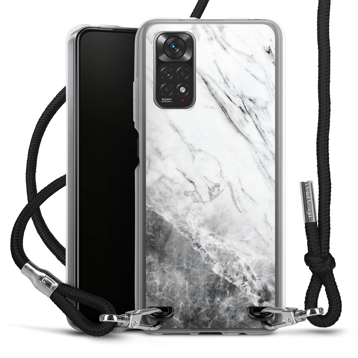 Keep your phone handy at all times, thanks to the flexible silicone case with a textile strap.