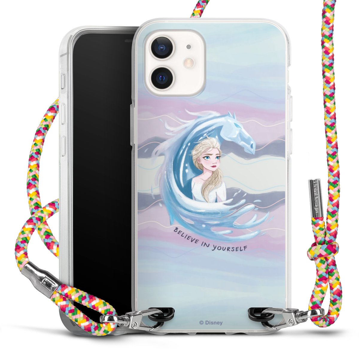 The flexible case is made from a highquality TPU material (thermoplastic Polyurethan). Thanks to its longlasting and break resistant characterisitcs, the case is flexible yet consistent in form and has a great grip and feel. The textile strap made from Polyester gives a chic yet casual accent allowing you to carry your phone like a bag or necklace - a practical gadget perfect for your next adventure. The textile strap is about 1.70 meters long and the length can easily be adjusted through the knots. Our Carry Case is available in Colourful, Mint-Camouflage, Very-Berry, Sahara-Sand and Sparkling-Neon. The ends of the textile strap are covered with metallic end caps to protect them against fraying.