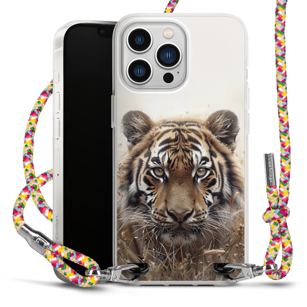 The flexible case is made from a highquality TPU material (thermoplastic Polyurethan). Thanks to its longlasting and break resistant characterisitcs, the case is flexible yet consistent in form and has a great grip and feel. The textile strap made from Polyester gives a chic yet casual accent allowing you to carry your phone like a bag or necklace - a practical gadget perfect for your next adventure. The textile strap is about 1.70 meters long and the length can easily be adjusted through the knots. Our Carry Case is available in Colourful, Mint-Camouflage, Very-Berry, Sahara-Sand and Sparkling-Neon. The ends of the textile strap are covered with metallic end caps to protect them against fraying.