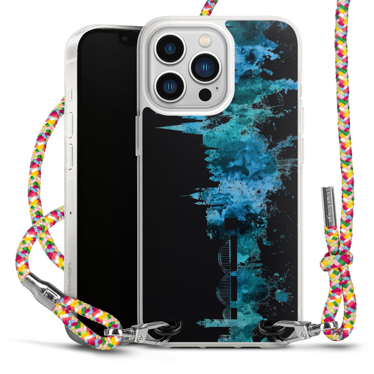 The flexible case is made from a highquality TPU material (thermoplastic Polyurethan). Thanks to its longlasting and break resistant characterisitcs, the case is flexible yet consistent in form and has a great grip and feel. The textile strap made from Polyester gives a chic yet casual accent allowing you to carry your phone like a bag or necklace - a practical gadget perfect for your next adventure. The textile strap is about 1.70 meters long and the length can easily be adjusted through the knots. Our Carry Case is available in Colourful, Mint-Camouflage, Very-Berry, Sahara-Sand and Sparkling-Neon. The ends of the textile strap are covered with metallic end caps to protect them against fraying.