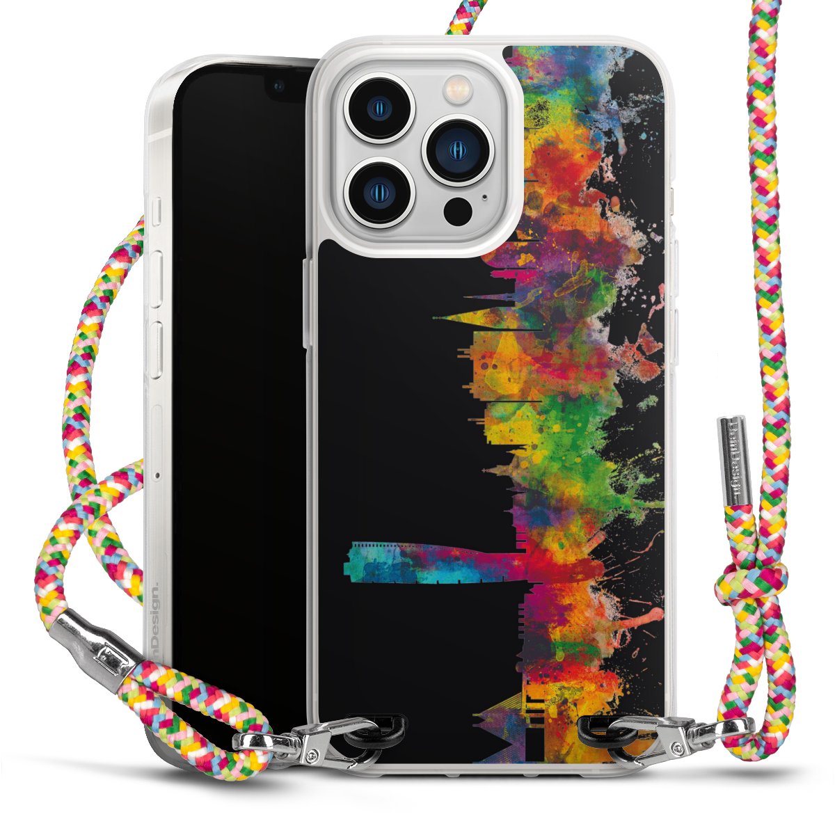 The flexible case is made from a highquality TPU material (thermoplastic Polyurethan). Thanks to its longlasting and break resistant characterisitcs, the case is flexible yet consistent in form and has a great grip and feel. The textile strap made from Polyester gives a chic yet casual accent allowing you to carry your phone like a bag or necklace - a practical gadget perfect for your next adventure. The textile strap is about 1.70 meters long and the length can easily be adjusted through the knots. Our Carry Case is available in Colourful, Mint-Camouflage, Very-Berry, Sahara-Sand and Sparkling-Neon. The ends of the textile strap are covered with metallic end caps to protect them against fraying.