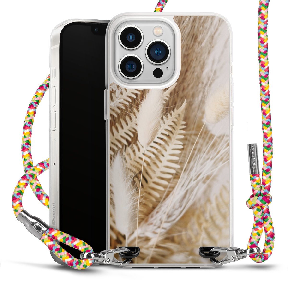 The flexible case is made from a highquality TPU material (thermoplastic Polyurethan). Thanks to its longlasting and break resistant characterisitcs, the case is flexible yet consistent in form and has a great grip and feel. The textile strap made from Polyester gives a chic yet casual accent allowing you to carry your phone like a bag or necklace - a practical gadget perfect for your next adventure. The textile strap is about 1.70 meters long and the length can easily be adjusted through the knots. Our Carry Case is available in Colourful, Mint-Camouflage, Very-Berry, Sahara-Sand and Sparkling-Neon. The ends of the textile strap are covered with metallic end caps to protect them against fraying.