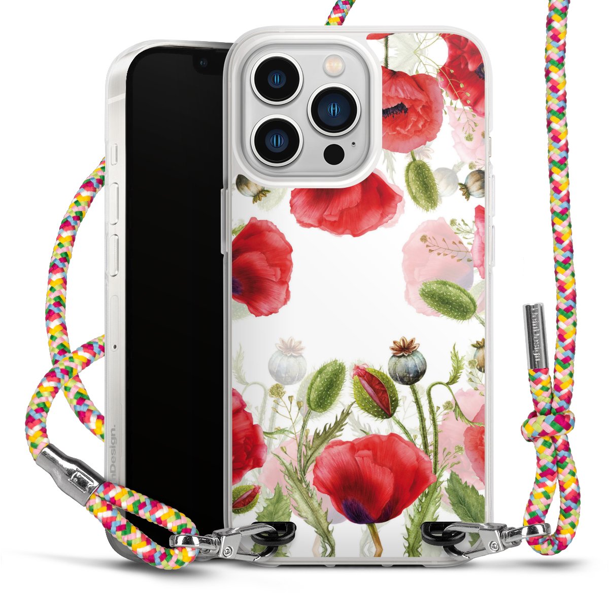 The flexible case is made from a highquality TPU material (thermoplastic Polyurethan). Thanks to its longlasting and break resistant characterisitcs, the case is flexible yet consistent in form and has a great grip and feel. The textile strap made from Polyester gives a chic yet casual accent allowing you to carry your phone like a bag or necklace - a practical gadget perfect for your next adventure. The textile strap is about 1.70 meters long and the length can easily be adjusted through the knots. Our Carry Case is available in Colourful, Mint-Camouflage, Very-Berry, Sahara-Sand and Sparkling-Neon. The ends of the textile strap are covered with metallic end caps to protect them against fraying.