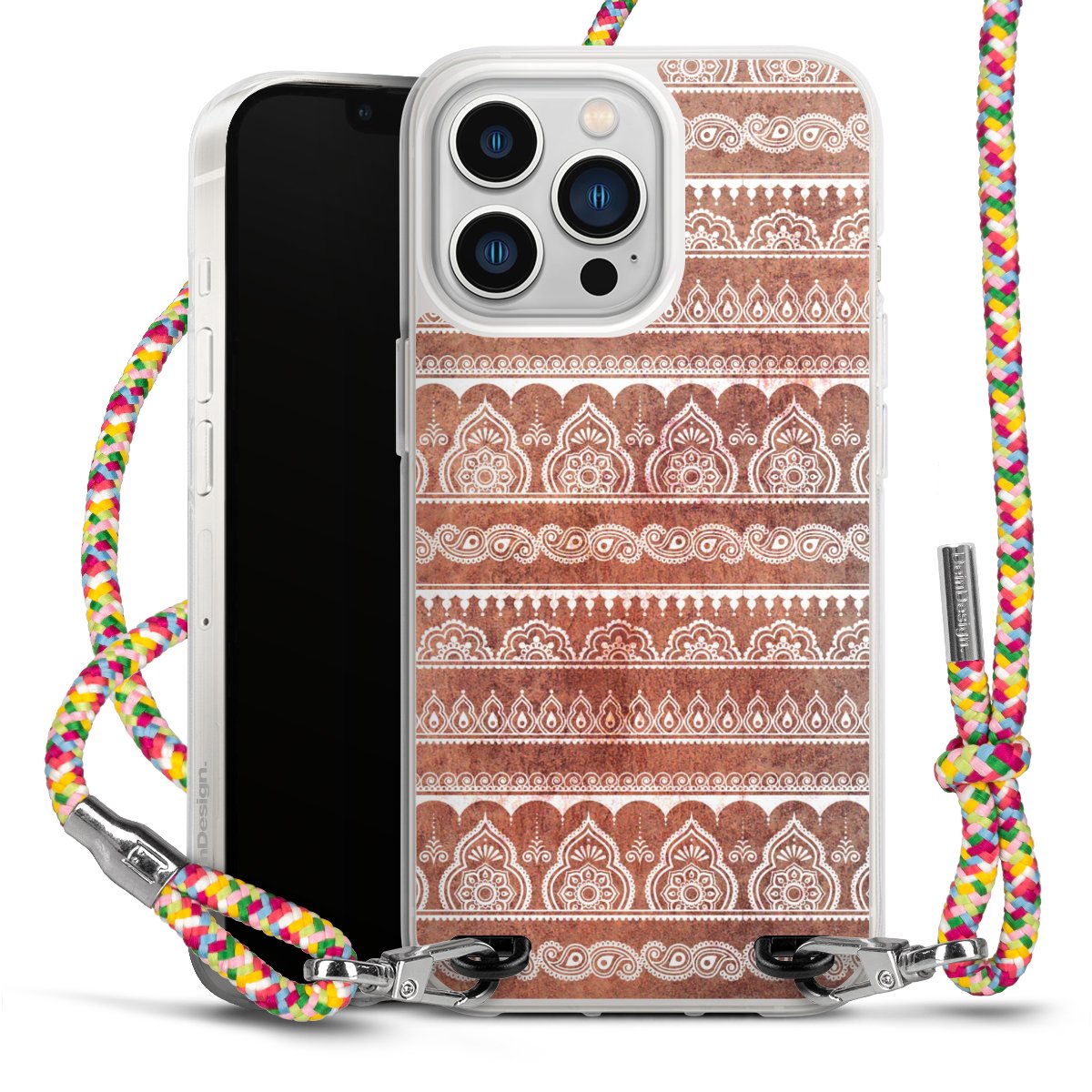The flexible case is made from a highquality TPU material (thermoplastic Polyurethan). Thanks to its longlasting and break resistant characterisitcs, the case is flexible yet consistent in form and has a great grip and feel. The textile strap made from Polyester gives a chic yet casual accent allowing you to carry your phone like a bag or necklace - a practical gadget perfect for your next adventure. The textile strap is about 1.70 meters long and the length can easily be adjusted through the knots. Our Carry Case is available in Colourful, Mint-Camouflage, Very-Berry, Sahara-Sand and Sparkling-Neon. The ends of the textile strap are covered with metallic end caps to protect them against fraying.