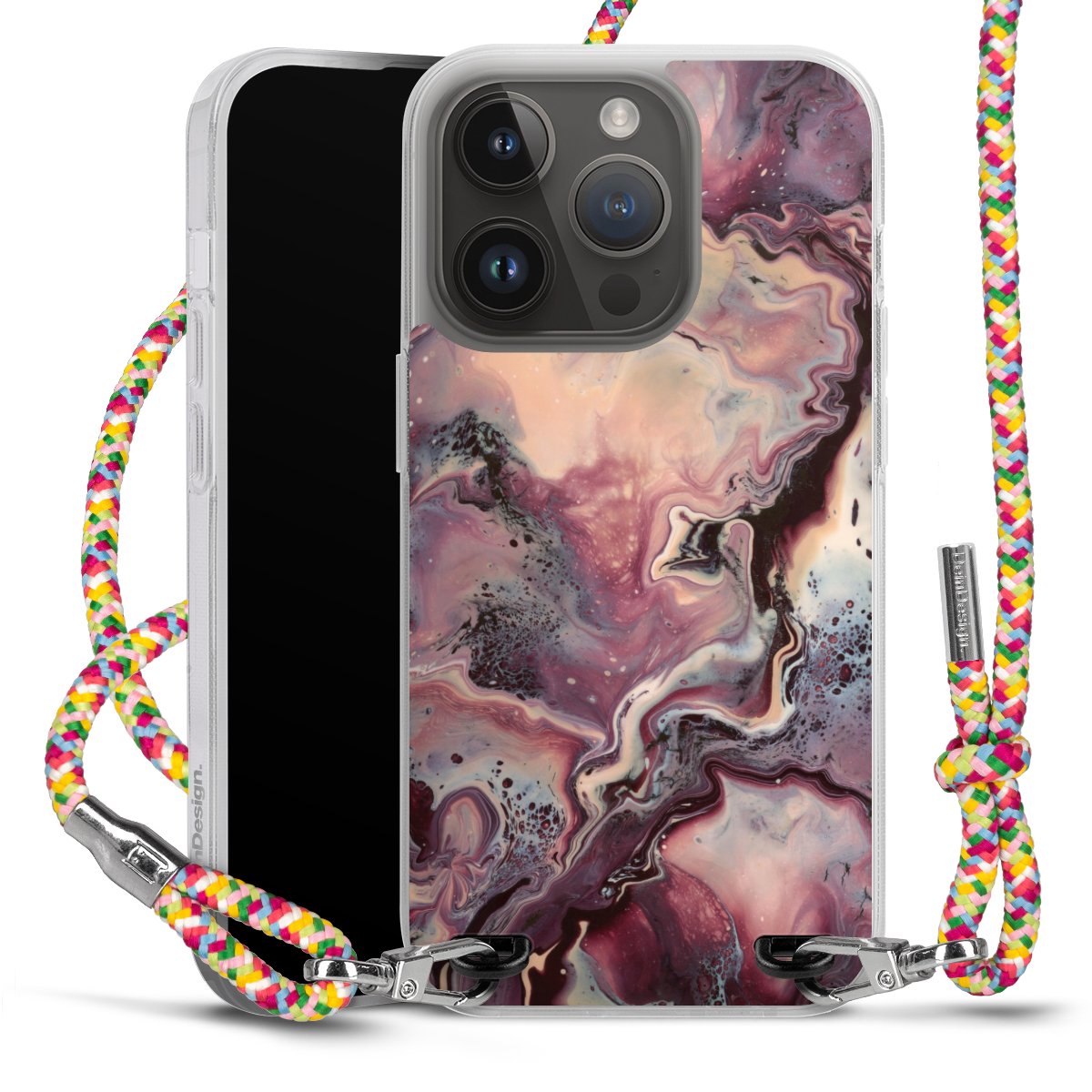 The flexible case is made from a highquality TPU material (thermoplastic Polyurethan). Thanks to its longlasting and break resistant characterisitcs, the case is flexible yet consistent in form and has a great grip and feel. The textile strap made from Polyester gives a chic yet casual accent allowing you to carry your phone like a bag or necklace - a practical gadget perfect for your next adventure. The textile strap is about 1.70 meters long and the length can easily be adjusted through the knots. Our Carry Case is available in Colourful, Mint-Camouflage, Very-Berry, Sahara-Sand and Sparkling-Neon. The ends of the textile strap are covered with metallic end caps to protect them against fraying.