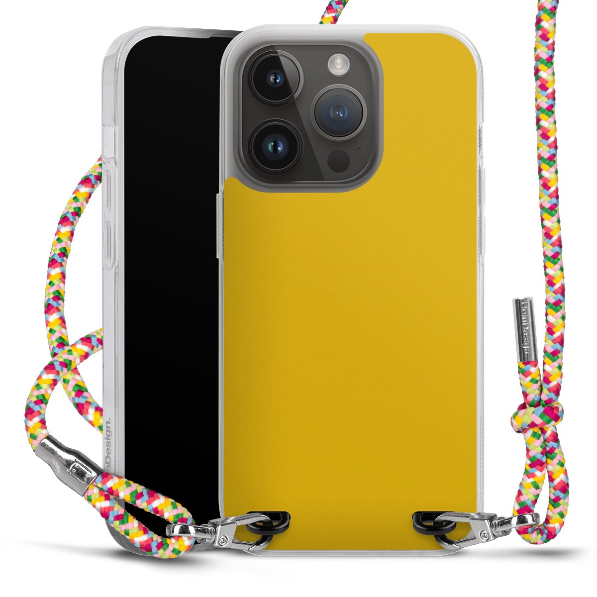 The flexible case is made from a highquality TPU material (thermoplastic Polyurethan). Thanks to its longlasting and break resistant characterisitcs, the case is flexible yet consistent in form and has a great grip and feel. The textile strap made from Polyester gives a chic yet casual accent allowing you to carry your phone like a bag or necklace - a practical gadget perfect for your next adventure. The textile strap is about 1.70 meters long and the length can easily be adjusted through the knots. Our Carry Case is available in Colourful, Mint-Camouflage, Very-Berry, Sahara-Sand and Sparkling-Neon. The ends of the textile strap are covered with metallic end caps to protect them against fraying.