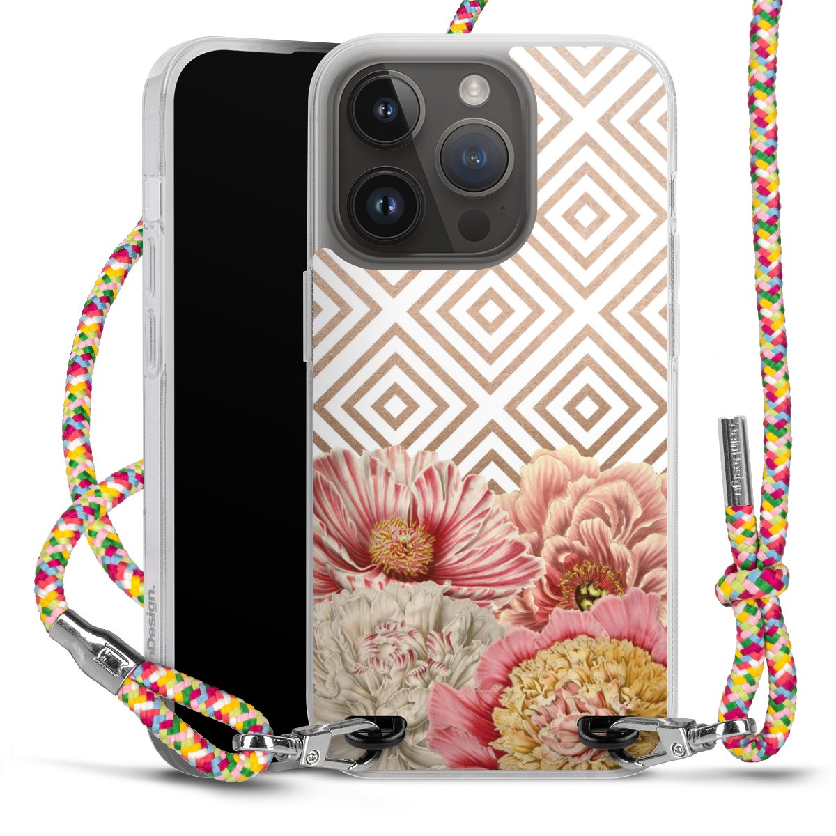 The flexible case is made from a highquality TPU material (thermoplastic Polyurethan). Thanks to its longlasting and break resistant characterisitcs, the case is flexible yet consistent in form and has a great grip and feel. The textile strap made from Polyester gives a chic yet casual accent allowing you to carry your phone like a bag or necklace - a practical gadget perfect for your next adventure. The textile strap is about 1.70 meters long and the length can easily be adjusted through the knots. Our Carry Case is available in Colourful, Mint-Camouflage, Very-Berry, Sahara-Sand and Sparkling-Neon. The ends of the textile strap are covered with metallic end caps to protect them against fraying.