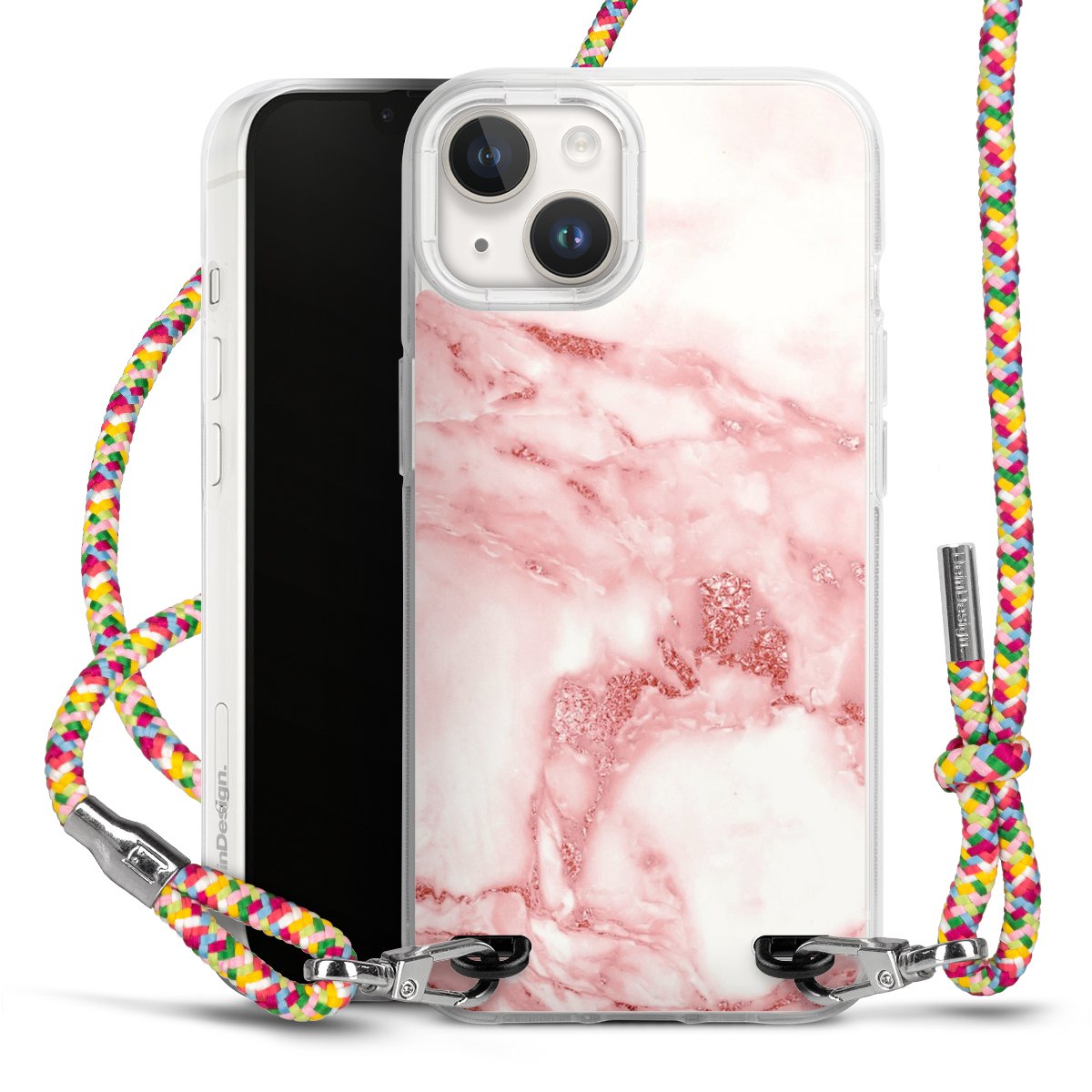 The flexible case is made from a highquality TPU material (thermoplastic Polyurethan). Thanks to its longlasting and break resistant characterisitcs, the case is flexible yet consistent in form and has a great grip and feel. The textile strap made from Polyester gives a chic yet casual accent allowing you to carry your phone like a bag or necklace - a practical gadget perfect for your next adventure. The textile strap is about 1.70 meters long and the length can easily be adjusted through the knots. Our Carry Case is available in Colourful, Mint-Camouflage, Very-Berry, Sahara-Sand and Sparkling-Neon. The ends of the textile strap are covered with metallic end caps to protect them against fraying.