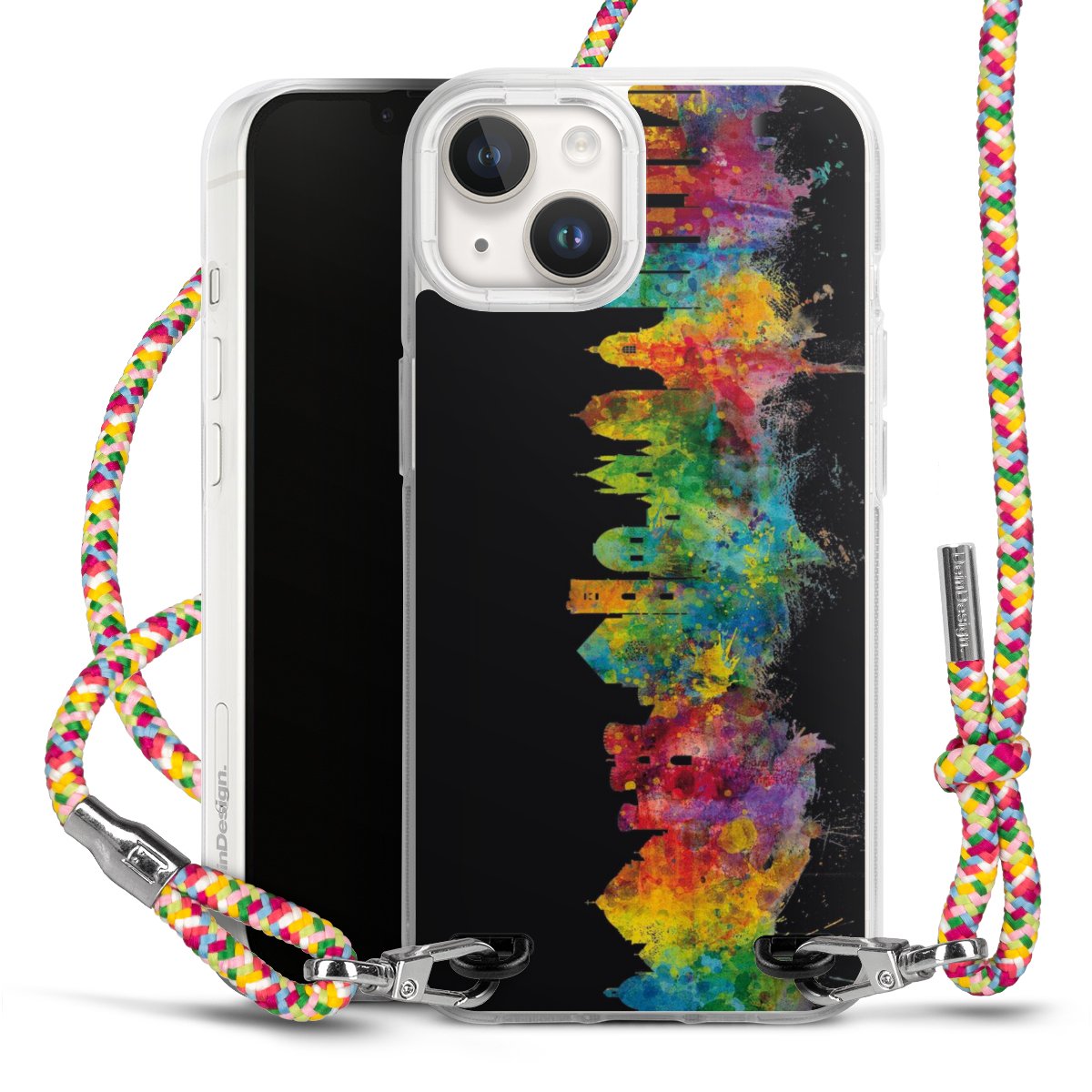 The flexible case is made from a highquality TPU material (thermoplastic Polyurethan). Thanks to its longlasting and break resistant characterisitcs, the case is flexible yet consistent in form and has a great grip and feel. The textile strap made from Polyester gives a chic yet casual accent allowing you to carry your phone like a bag or necklace - a practical gadget perfect for your next adventure. The textile strap is about 1.70 meters long and the length can easily be adjusted through the knots. Our Carry Case is available in Colourful, Mint-Camouflage, Very-Berry, Sahara-Sand and Sparkling-Neon. The ends of the textile strap are covered with metallic end caps to protect them against fraying.