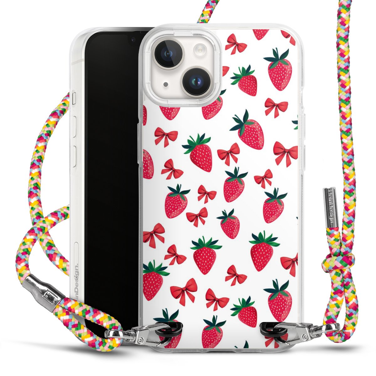 The flexible case is made from a highquality TPU material (thermoplastic Polyurethan). Thanks to its longlasting and break resistant characterisitcs, the case is flexible yet consistent in form and has a great grip and feel. The textile strap made from Polyester gives a chic yet casual accent allowing you to carry your phone like a bag or necklace - a practical gadget perfect for your next adventure. The textile strap is about 1.70 meters long and the length can easily be adjusted through the knots. Our Carry Case is available in Colourful, Mint-Camouflage, Very-Berry, Sahara-Sand and Sparkling-Neon. The ends of the textile strap are covered with metallic end caps to protect them against fraying.