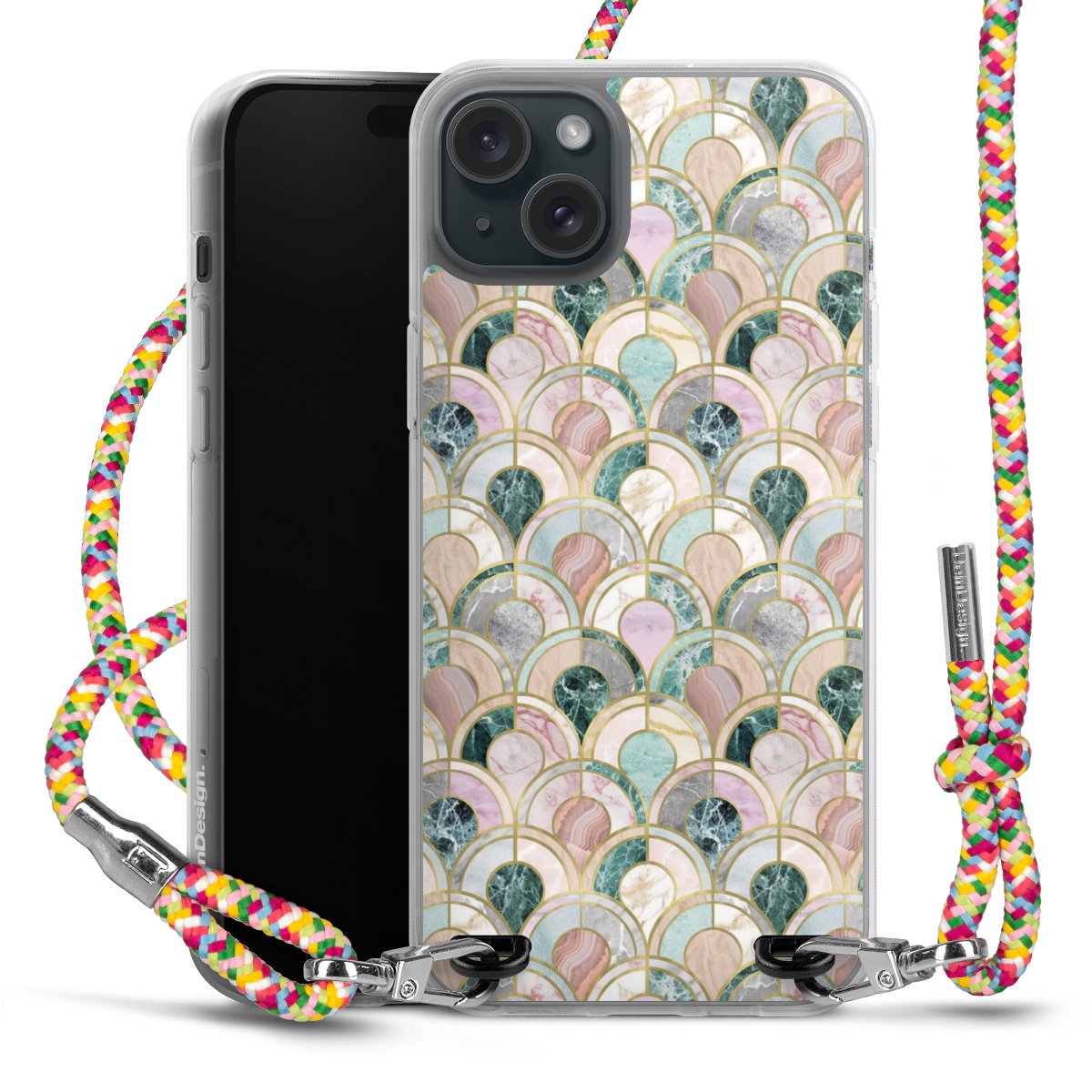 The flexible case is made from a highquality TPU material (thermoplastic Polyurethan). Thanks to its longlasting and break resistant characterisitcs, the case is flexible yet consistent in form and has a great grip and feel. The textile strap made from Polyester gives a chic yet casual accent allowing you to carry your phone like a bag or necklace - a practical gadget perfect for your next adventure. The textile strap is about 1.70 meters long and the length can easily be adjusted through the knots. Our Carry Case is available in Colourful, Mint-Camouflage, Very-Berry, Sahara-Sand and Sparkling-Neon. The ends of the textile strap are covered with metallic end caps to protect them against fraying.