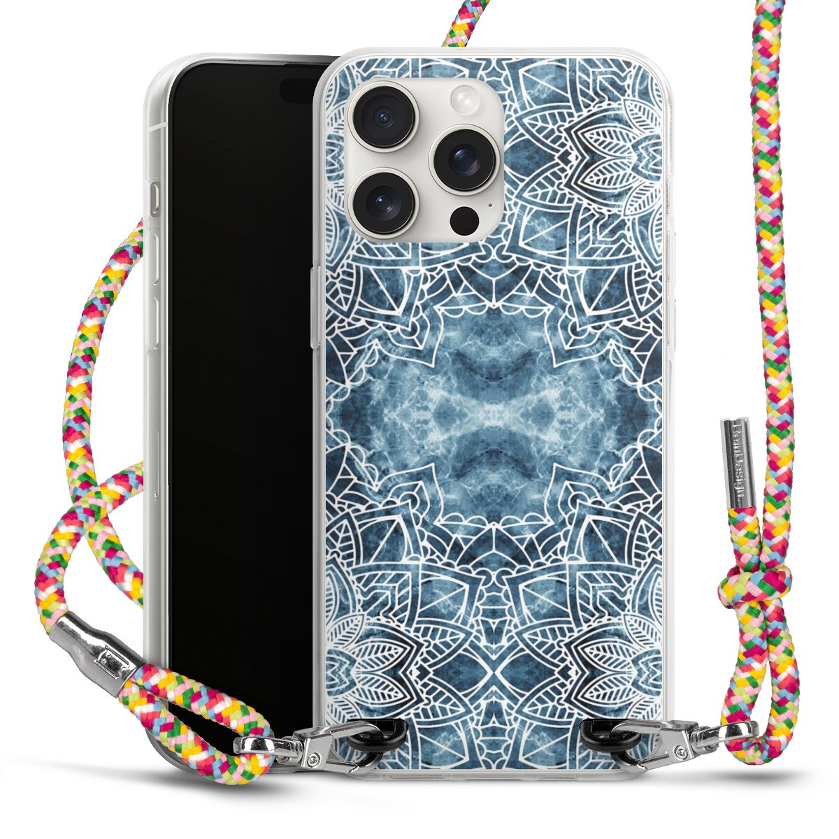 The flexible case is made from a highquality TPU material (thermoplastic Polyurethan). Thanks to its longlasting and break resistant characterisitcs, the case is flexible yet consistent in form and has a great grip and feel. The textile strap made from Polyester gives a chic yet casual accent allowing you to carry your phone like a bag or necklace - a practical gadget perfect for your next adventure. The textile strap is about 1.70 meters long and the length can easily be adjusted through the knots. Our Carry Case is available in Colourful, Mint-Camouflage, Very-Berry, Sahara-Sand and Sparkling-Neon. The ends of the textile strap are covered with metallic end caps to protect them against fraying.