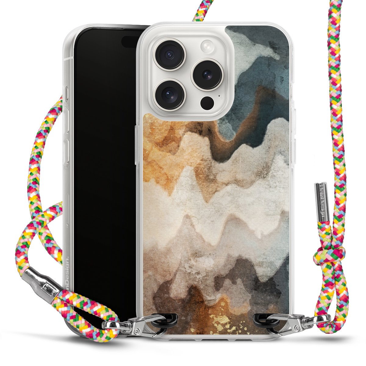 The flexible case is made from a highquality TPU material (thermoplastic Polyurethan). Thanks to its longlasting and break resistant characterisitcs, the case is flexible yet consistent in form and has a great grip and feel. The textile strap made from Polyester gives a chic yet casual accent allowing you to carry your phone like a bag or necklace - a practical gadget perfect for your next adventure. The textile strap is about 1.70 meters long and the length can easily be adjusted through the knots. Our Carry Case is available in Colourful, Mint-Camouflage, Very-Berry, Sahara-Sand and Sparkling-Neon. The ends of the textile strap are covered with metallic end caps to protect them against fraying.