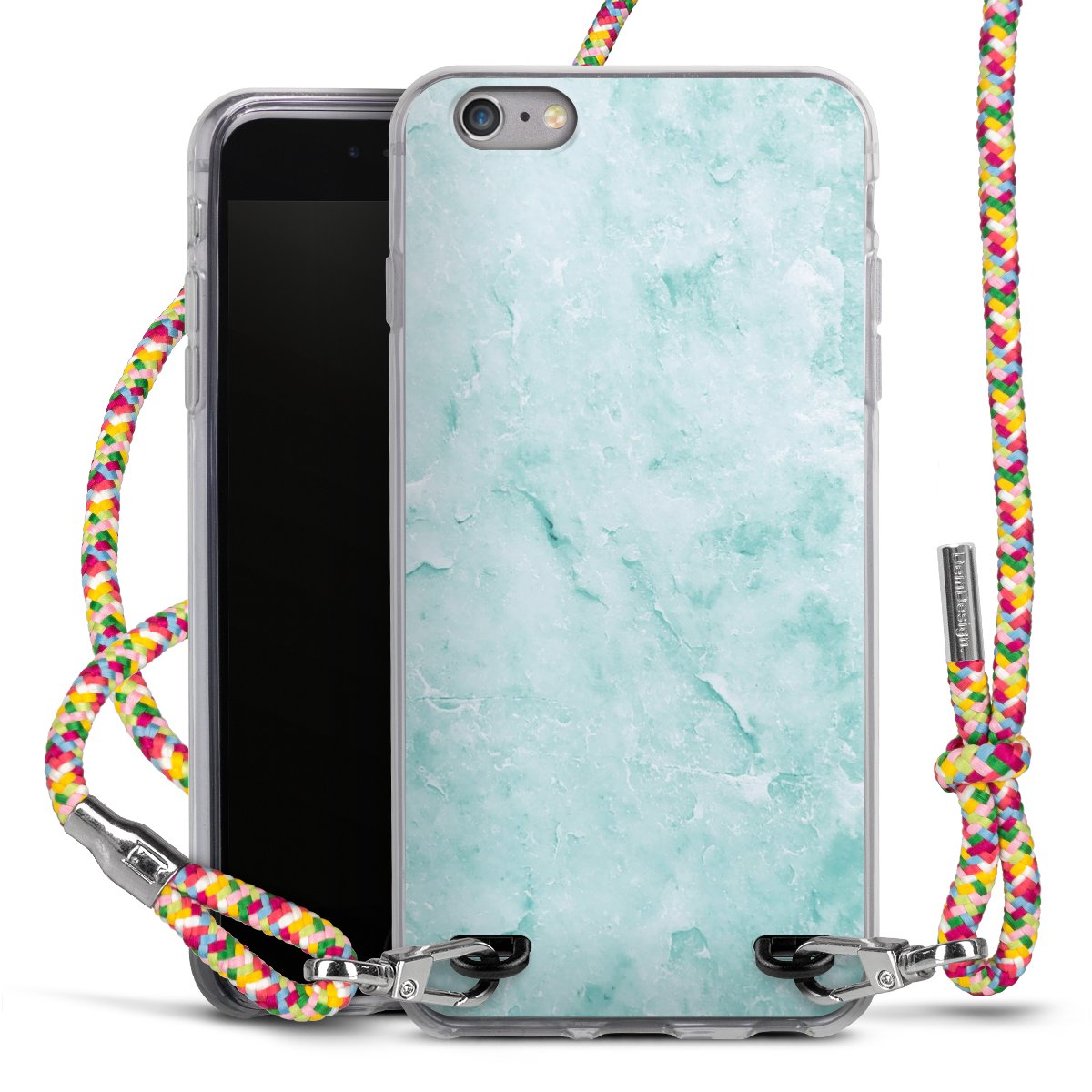 The flexible case is made from a highquality TPU material (thermoplastic Polyurethan). Thanks to its longlasting and break resistant characterisitcs, the case is flexible yet consistent in form and has a great grip and feel. The textile strap made from Polyester gives a chic yet casual accent allowing you to carry your phone like a bag or necklace - a practical gadget perfect for your next adventure. The textile strap is about 1.70 meters long and the length can easily be adjusted through the knots. Our Carry Case is available in Colourful, Mint-Camouflage, Very-Berry, Sahara-Sand and Sparkling-Neon. The ends of the textile strap are covered with metallic end caps to protect them against fraying.